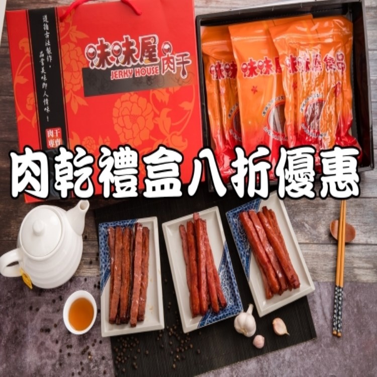 【味味屋肉干】傳統純手工現烤肉干,114年慶祝中秋節,即日起至114年10月3日止~,全館滿500元全面八折優惠,伴手禮肉乾禮盒八折優惠,2000元(打折前)免運費,本店百分百使用國產台灣豬肉 請放心使用~~